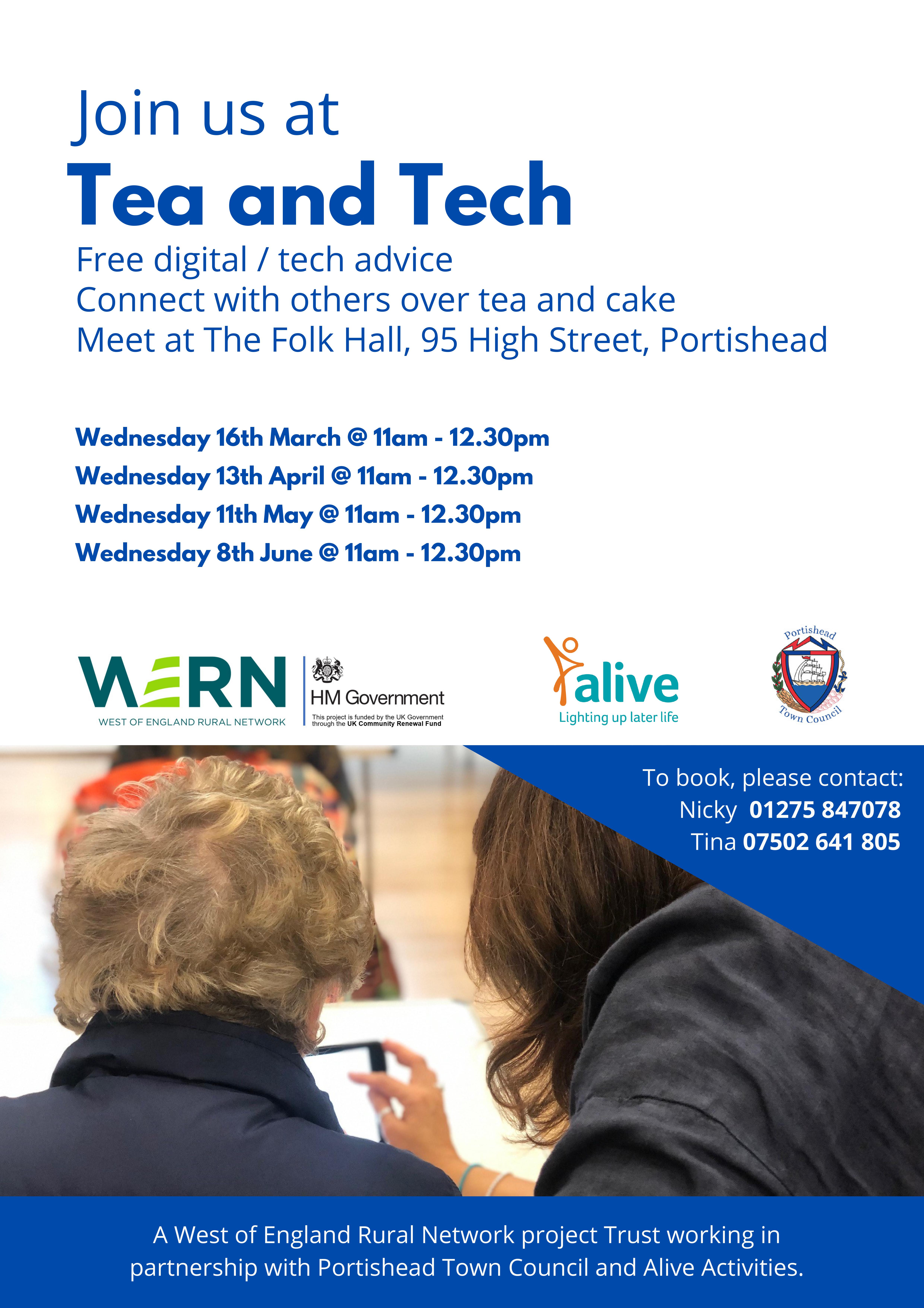We're delighted to be joining forces with the West of England Rural Network and Alive Activities at one of their 'Tea and Tech' sessions at The Folk Hall in Portishead on Wednesday 13th April to offer support and guidance to anyone who wants to improve their digital skills and learn more about managing their health online.
